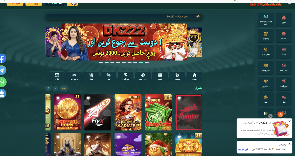 Dk222 Game is a leading online casino platform offering Pakistani players a comprehensive gaming experience with hundreds of slot machines, table games, and live casino options. Dk222 Game has gained significant popularity due to its localized payment methods, Urdu language support, and mobile-friendly interface.